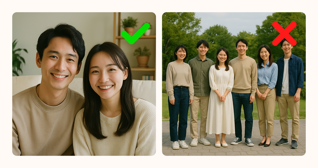 なるべく被写体は大きくしてください。たくさんの人が写っている写真は避けてください。