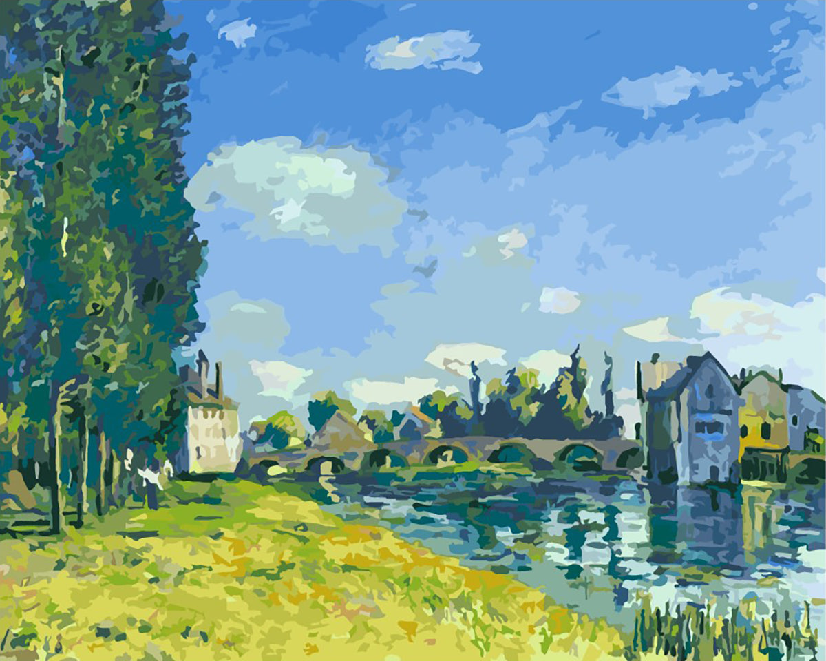 アルフレッド・シスレー(Alfred Sisley)が1888年に描いたとされる『夏のモレ橋 / The Moret Bridge in the summer』をもとに制作した数字絵画キットです。